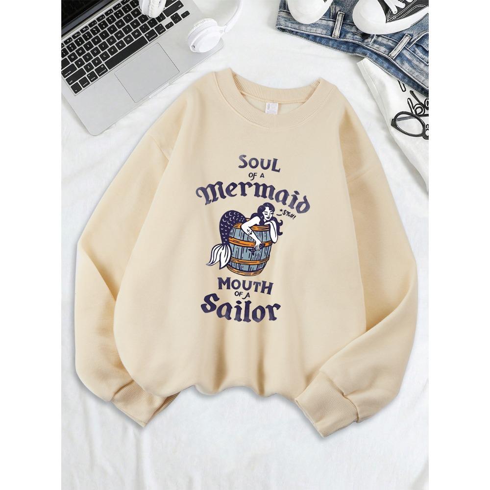 Seele einer Meerjungfrau Druck Sweatshirts Damen Winter Warme Hoodies Rundhals Lockerer Pullover Basics Sportliche Damenbekleidung
