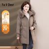 Yalu Damen Mittellange Daunenjacke mit Fuchspelzkragen