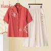 Xiao Fu Damen Sommer Kurzarm T-Shirt & Lässiges Zweiteiler Set