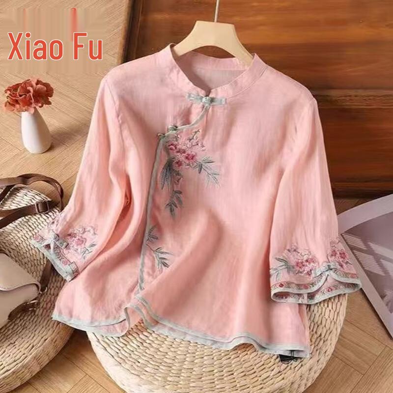 Elegante Sommerbluse im chinesischen Stil mit Blumenmuster