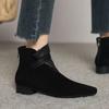 Pelzstiefel für Damen im Herbst und Winter 2025, neue Modelle, keine müden Füße, Stiefel, spitze Zehen, niedriger Absatz, flacher Absatz, Mode aus Mattleder und Samt