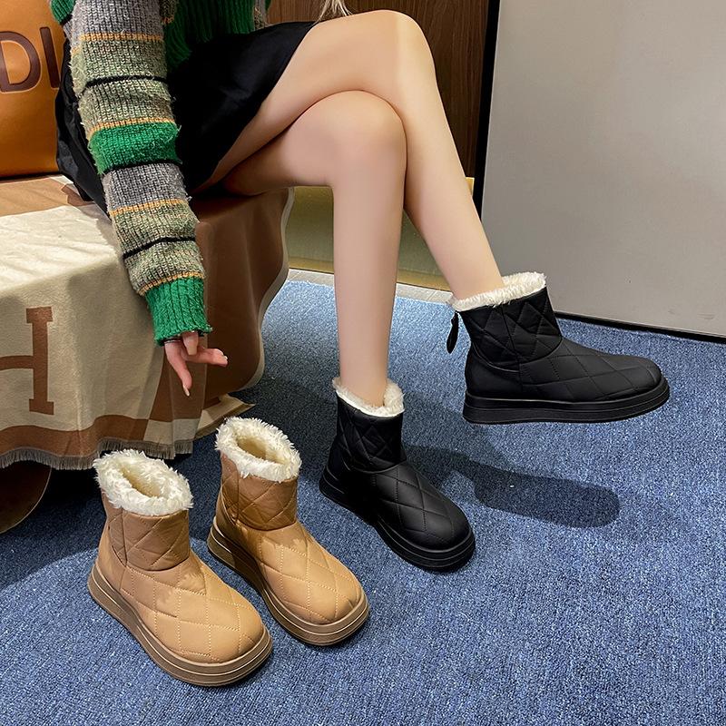 Nordöstliche Schneestiefel Damen neue schwarze niedrige koreanische Version Samt dicksohlige rutschfeste warme Baumwollschuhe im Herbst und Winter 2025