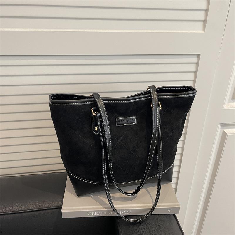 Large-capacity commuter class tote bag autumn popular rhombus splicing advanced atmosphere class bag casual shoulder bag