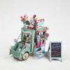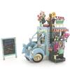 -Wunderschön detaillierte 3D-Karte. Schöne Karte entfaltet sich zu einem komplizierten, dreidimensional dekorierten Blumenverkäuferwagen.
