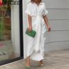 BITCED Damen Hemdkleid mit Kragen, mittellang, kurzärmelig, einreihig, hoch tailliert, Frühling