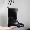 Koreanische Version von handgefertigten Zigarettenstiefeln für Damen 2025 Herbst und Winter neue Lederstiefel mittelhohe Stiefel bedeckende antike gerade Radfahren b