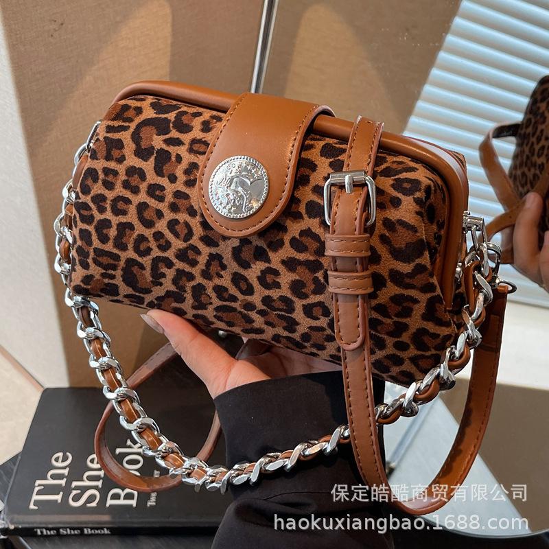 Premium chain bag women's 2025 new fashion leopard print shell bag versatile retro autumn and winter shoulder messenger bag