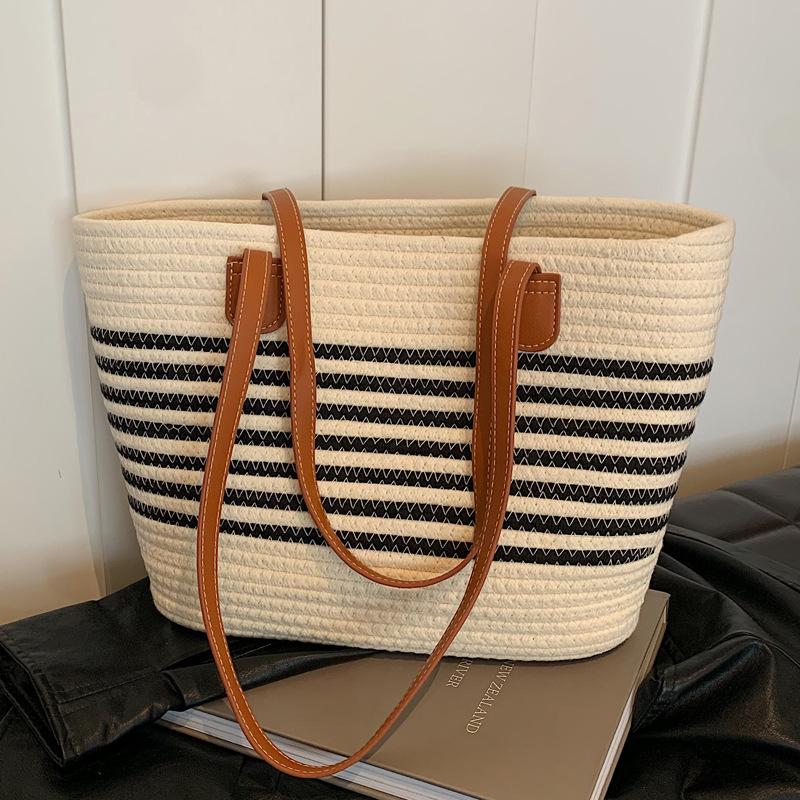 Woven straw bag women's large capacity 2025 new vegetable basket shoulder bag beach premium commuter tote bag