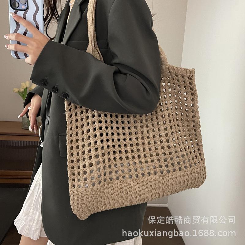 Lazy slack bag lady 2025 new spring and summer hollow knitted handbag shoulder large capacity tote bag