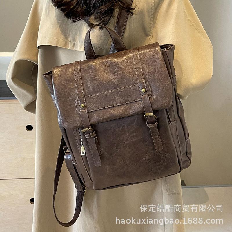 Large capacity bag 2025 new retro versatile backpack women's portable Korean version schoolbag premium sense going out backpack