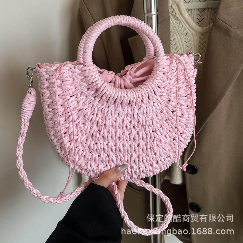 Woven straw bag women's 2025 new niche design high-end messenger bag seaside popular portable tote bag