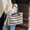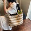 Simple and large-capacity straw bag portable shoulder bag women's 2025 summer new striped women's tote bag wholesale