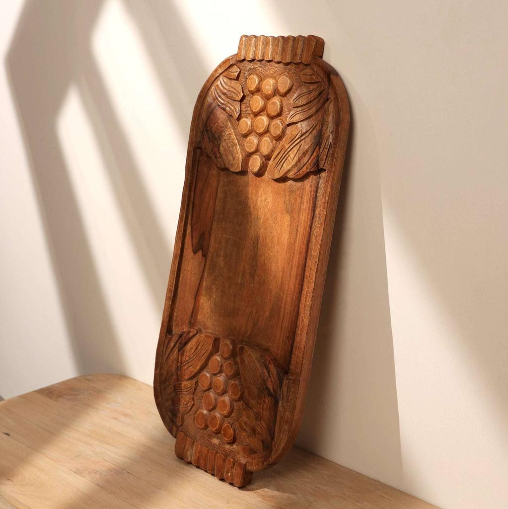 Handcrafted Wooden Grape Carved Cheese Board - Artisan Charcuterie Serving Platter - Rustic Wood Decor