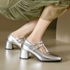 Neue Vier Jahreszeiten Damen High Heel Einzelne Schuhe Schnalle Gummi Weiche Sohle Einzelne Schuhe Quadratische Spitze Lässig Lackleder Quadratischer Absatz Große Größe