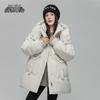 XueZhongFei Damen-Steppjacke mit Kapuze, mittellang, 90 % Daunenfüllung