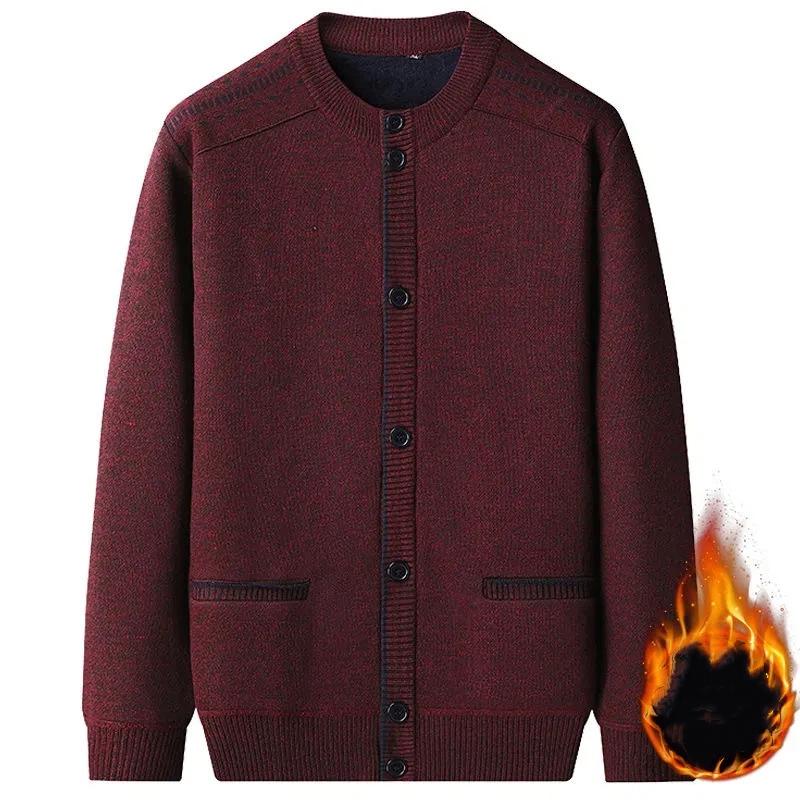 Herren Strickjacke Wollpullover Herbst und Winter Samt Dick Gestrickte Jacke Rundhals Warmes Oberteil