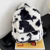 Milk Cow Pattern Plush Backpacks Versatile Women Cartoon Daypack Adjustable Strap Multifunctional Shopping Backpack