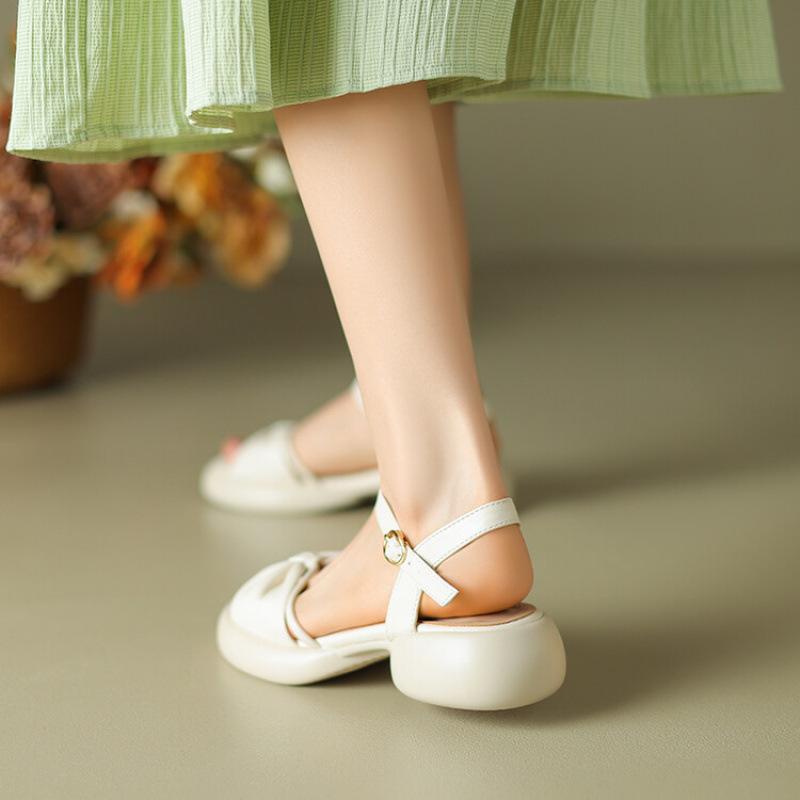 Neue Studentensandalen Damen Rundkopf Schnalle Bequeme Mädchen Plateausandalen Einfarbig Sommer Damen Ein-Wort-Sandalen