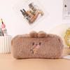 Niedliches Cartoon-Stickerei Plüsch-Federmäppchen Wow Schreibwaren Federmäppchen mit großer Kapazität Mädchen Kosmetiktasche Aufbewahrungstasche
