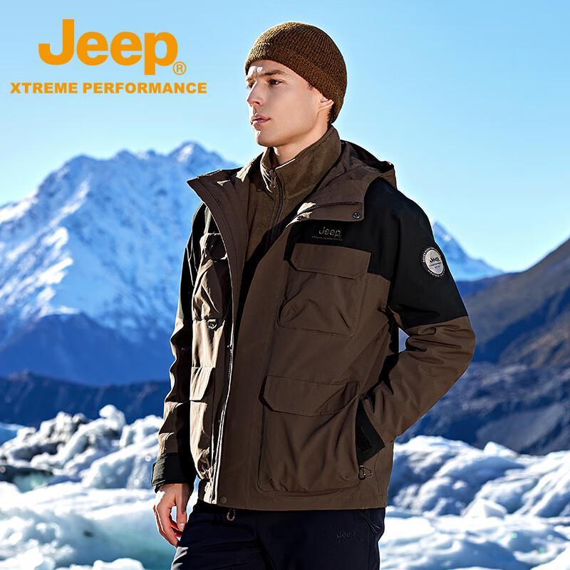 Jeep Men's 3-in-1 Outdoor Windproof Waterproof Fleece Jacket