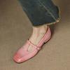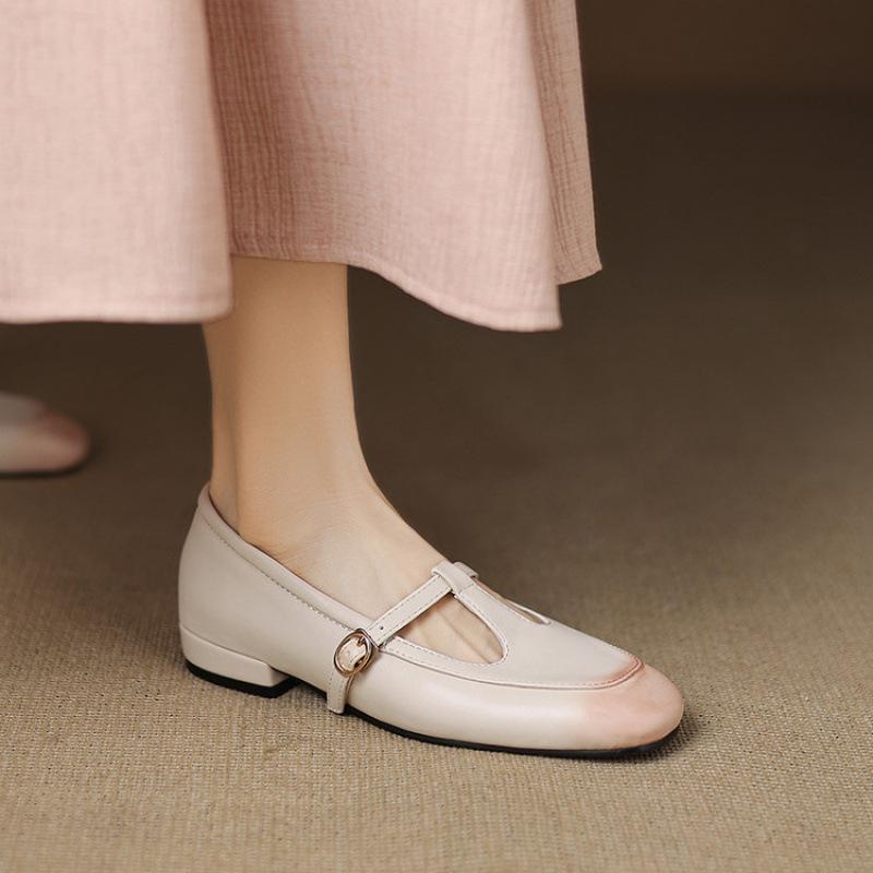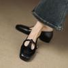 Neue Vier-Jahreszeiten-Einzelschuhe Damenfuß Gummi Weiche Sohle Große und kleine Größe Damenschuhe Quadratische Spitze Lässig Niedriger Absatz Damen Kleine Lederschuhe