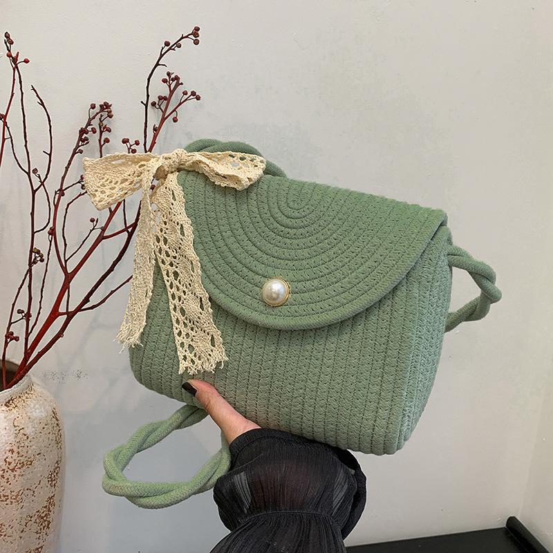 Beach Trend Personality 2025 Silk Scarf New Summer ins Trendy Straw Simple Rattan One Shoulder Crossbody Underarm Bag