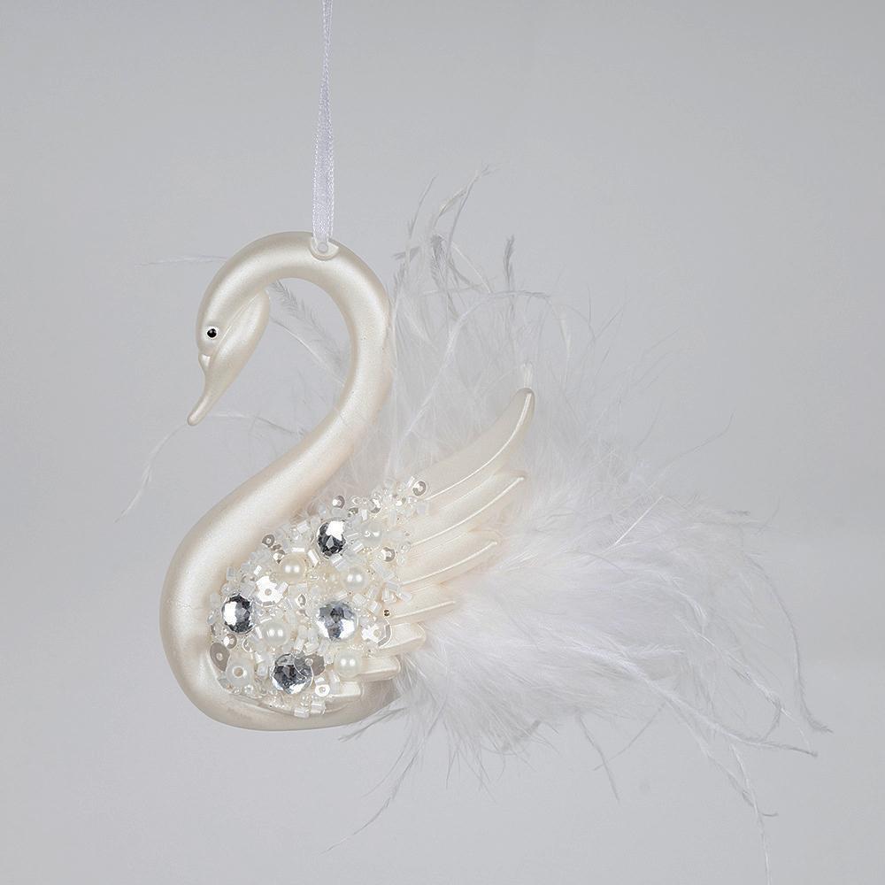 Weißer Schwan Feder Weihnachtsbaumschmuck Anhänger Romantisches Zuhause Weihnachtsspielzeug Kunststoffkugeln Weihnachtsfeier Geschenk Neujahr 2024