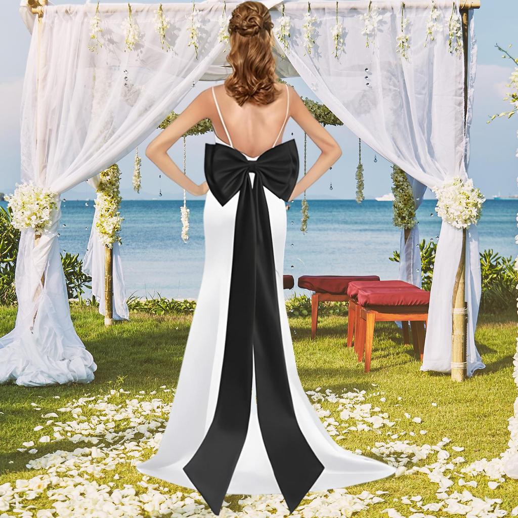 - 【Elegantes Design】: Verfügt über eine große, abnehmbare Satinschleife mit einer schleppenden Schleppe, ideal, um Brautkleidern eine verträumte und anspruchsvolle Note zu verleihen.