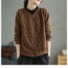 Damen Retro Rautenmuster Strickjacke Locker Lässig V-Ausschnitt Baseball Uniform Jacke