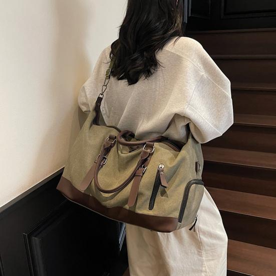 Wir stellen unsere vielseitige Reisetasche vor, gefertigt aus strapazierfähigem und kratzfestem Canvas für verbesserte Langlebigkeit.. Diese Tasche bietet mehrere Trageoptionen, sodass Sie sie in der Hand, über der Schulter oder quer über den Körper tragen können, um zusätzlichen Komfort zu gewährleisten.. Mit einem geräumigen Hauptfach und einer kleinen Außentasche mit Reißverschluss für einfachen Zugriff auf kleine Gegenstände ist diese Tasche darauf ausgelegt, Ihre Reisen stressfrei zu gestalten.