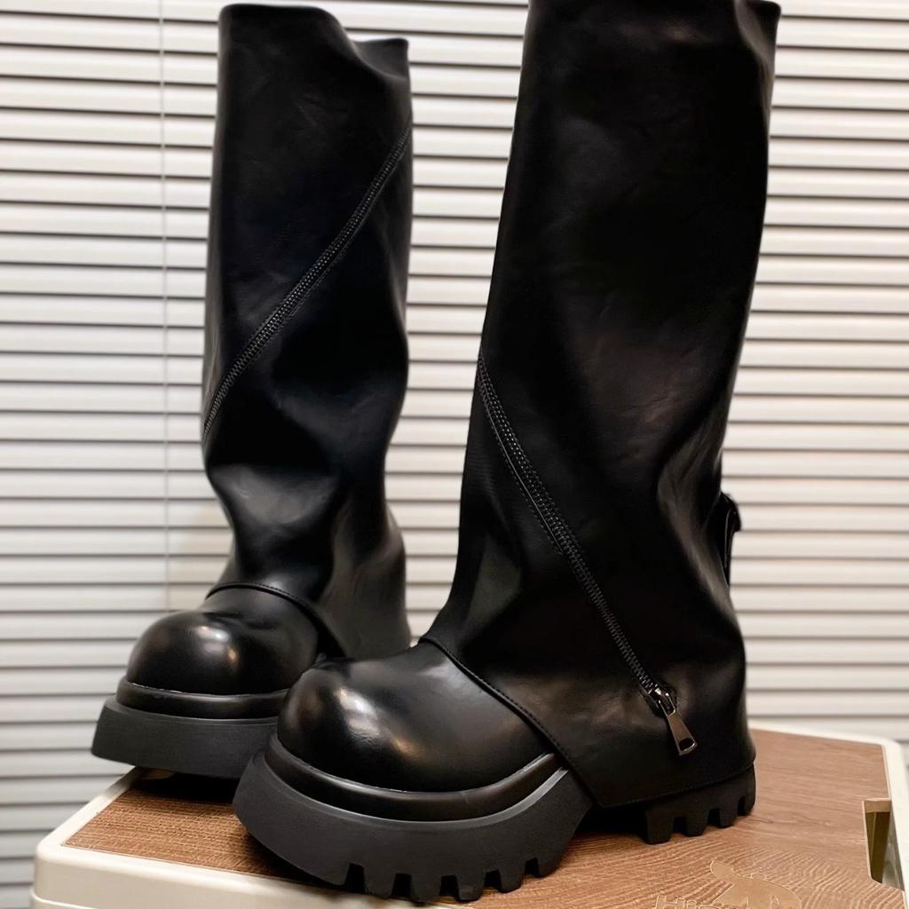 Europäische Plateau-Stiefel mit großem Reißverschluss, Martin-Stiefel, Lokomotivstiefel, Spice Girls-Stiefel, Hosen, lange Stiefel, kleine Damenschuhe