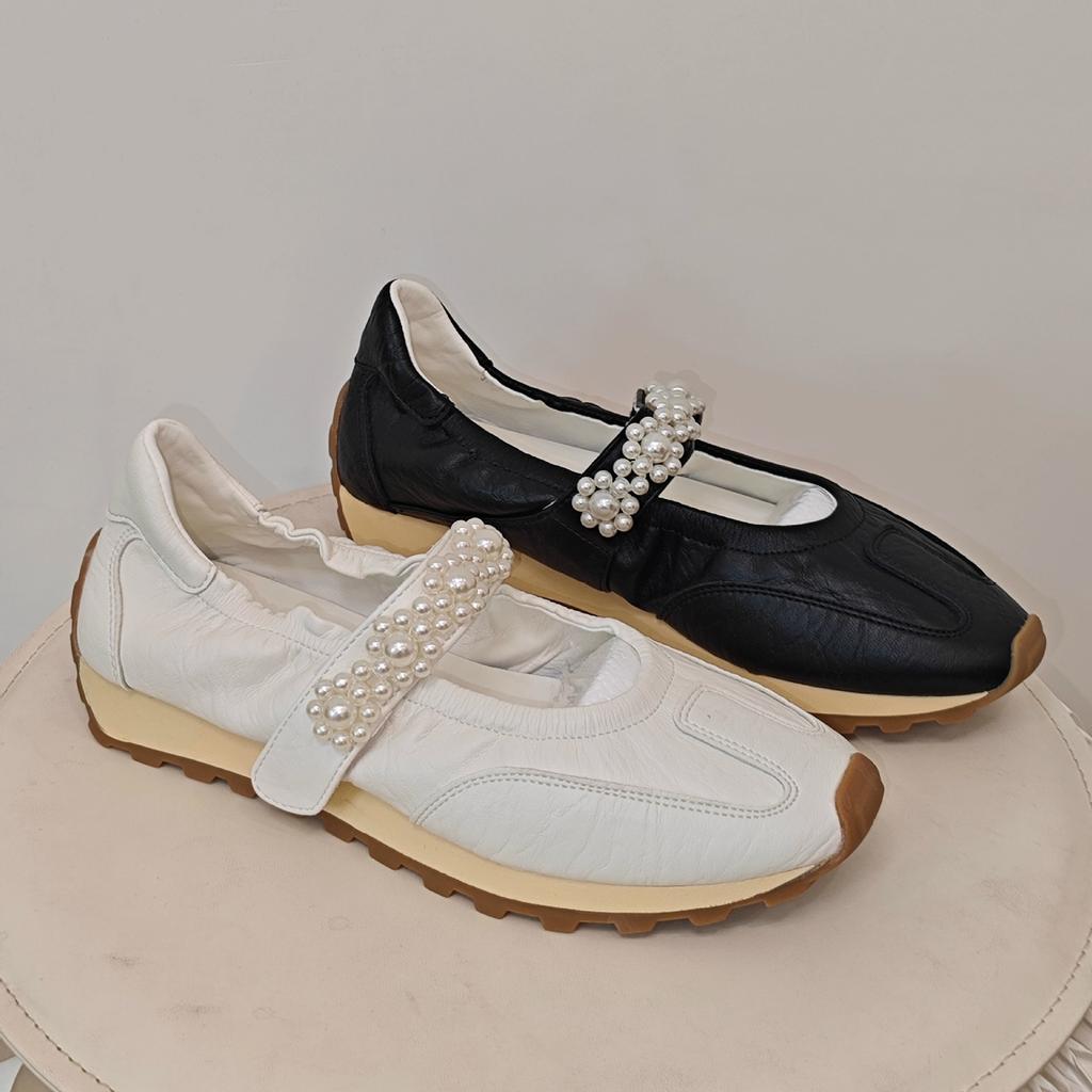 Rindslederversion~ Retro-Stil Sport-Ballettschuhe Damen Innenhöhe erhöht Perle Klettverschluss Casual Mary Jane Einzelne Schuhe Damen