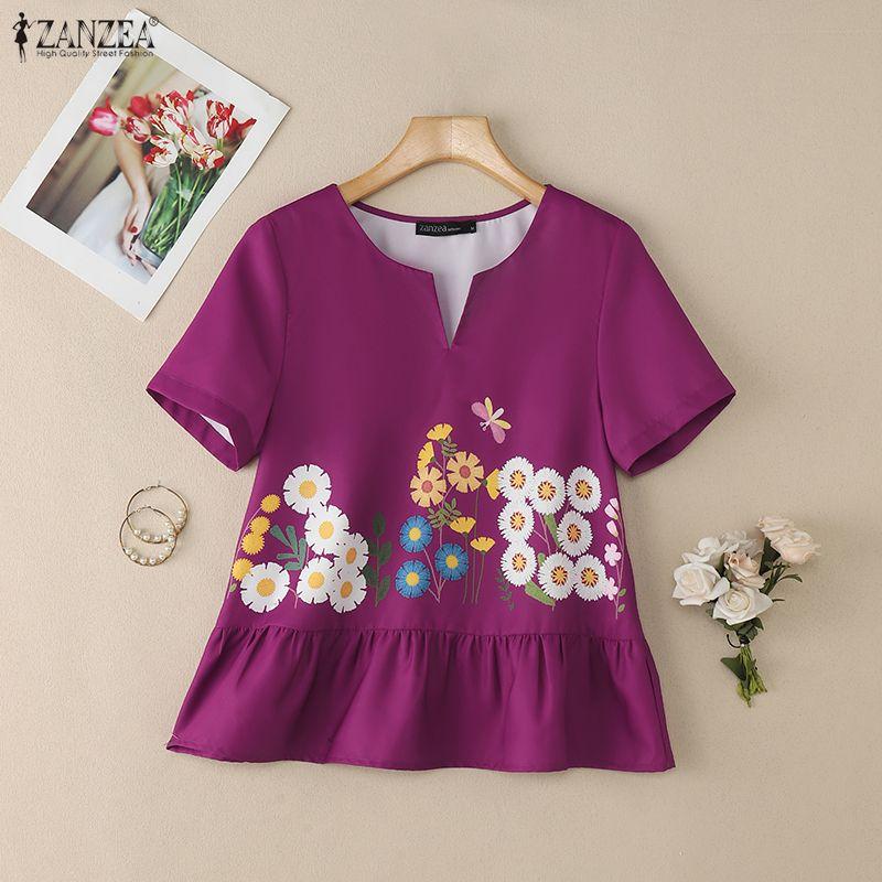 ZANZEA Women Casual V-Neck Short Sleeve Floral Print Blouse