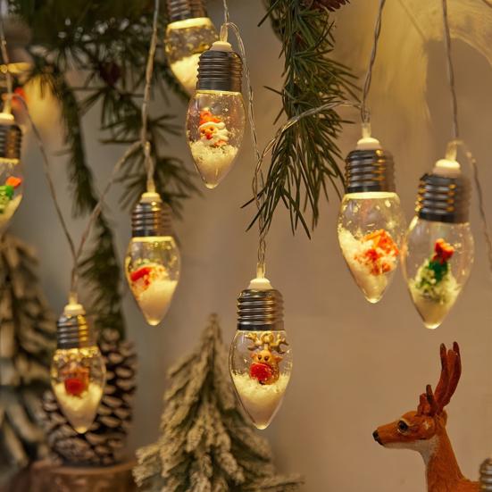 Weihnachten Schnee Lichterkette LED Farbige Schneekugeln Dekorationen für Zuhause Terrasse Kaminsims Kamin Innen Außen Weihnachtsbaumschmuck