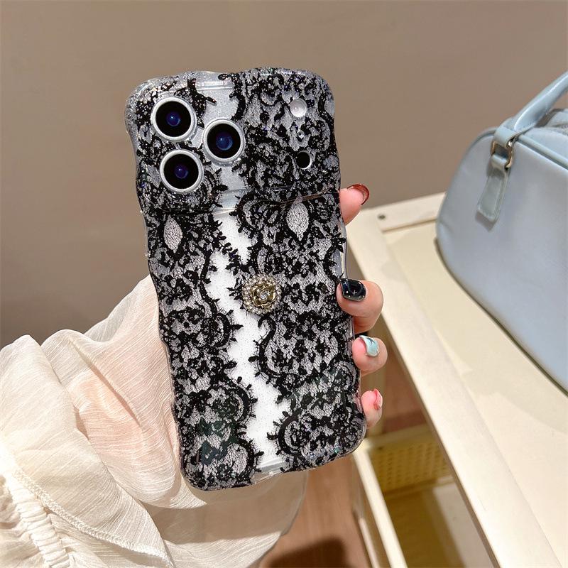 Schwarze Spitze Halbtransparent Doppellagige Handyhülle für iPhone 17/16 Pro Max/14/15