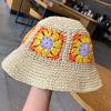 Women Sun Beach Crochet Flowers Hat Fisherman Hat Tourism Female Vacation Paper Straw Bucket Hat