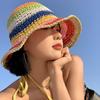 Regenbogen Strohhut Damen Sommer Sonnenschutz Handgehäkelt Großer Rand Eimerhut Damen Strand Sonnenhut Boho Dame Mädchen Mode Hüte