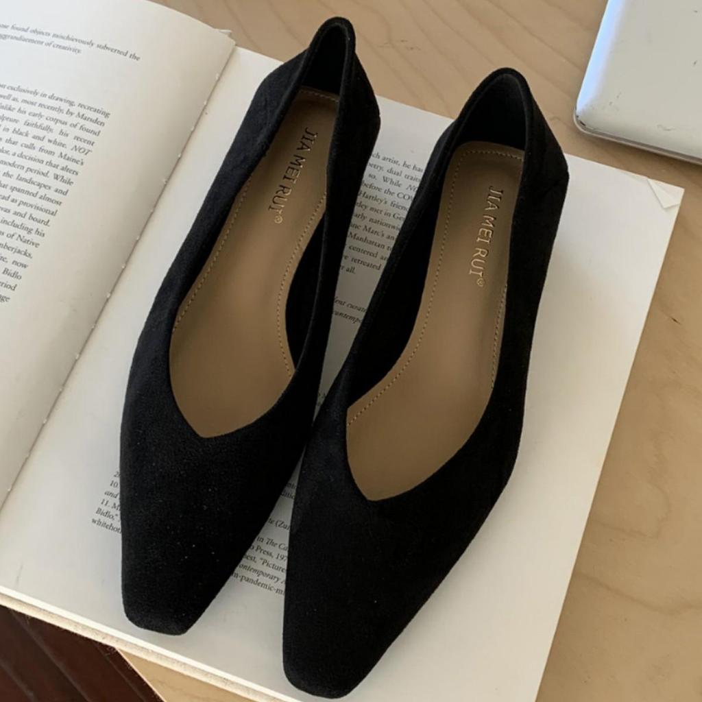 Damen Wildleder Schuhe mit eckiger Zehenpartie und niedrigem Absatz, zum Hineinschlüpfen, Koreanischer Stil, vielseitig für alle Jahreszeiten, Neue Kollektion 2025