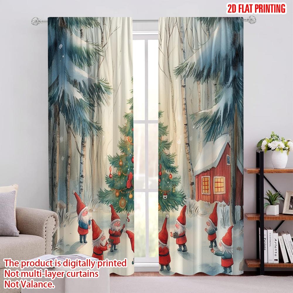 2 Stück, 2D-Flachdruck Vorhang Beliebter Weihnachtsbaum Wald Wichtel (2) Polyester Fabrik (ohne Stange) Dekorationen für den Außenbereich