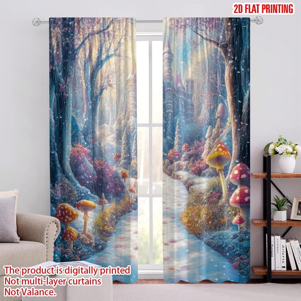 2 Stück, 2D-Flachdruck Kreative Vorhänge Verzauberte Winterlandschaft Vielseitig Langlebig Polyester (ohne Stange) Dekorationen für Zuhause