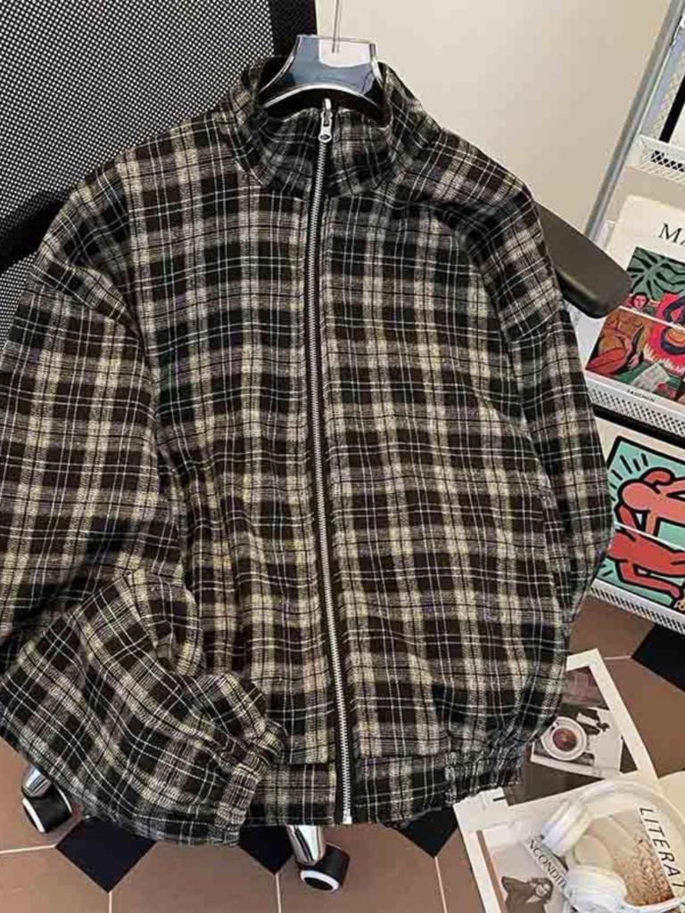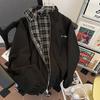 Spring and Autumn double-sided plaid jacket men's stand-up collar casual trendy brand ruffian handsome American front and back two wear retro loose