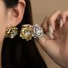 High-End kleine Duft plissierte dreidimensionale Rosenblüte Metallstecker Ohrringe Weiblichkeit vielseitige Ohrringe neu