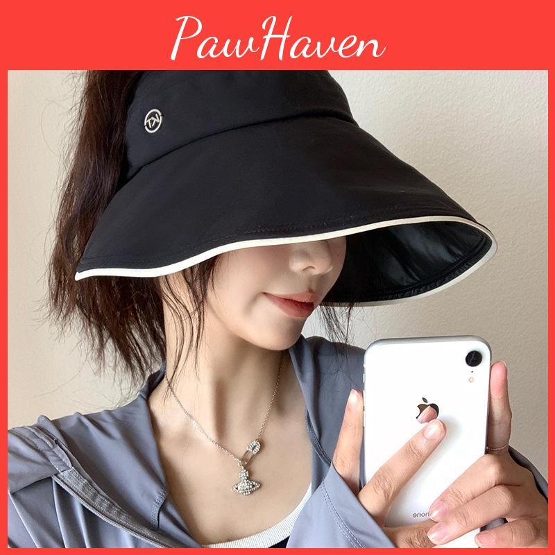 Large Brim Trendy Summer Hat For Women Uv Protection Black Sun Visor Cap