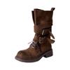 Damen 2025 Retro Schnür-Martin-Stiefel - Dicke Sohle Gürtelschnalle Mid-Calf Motorradstil