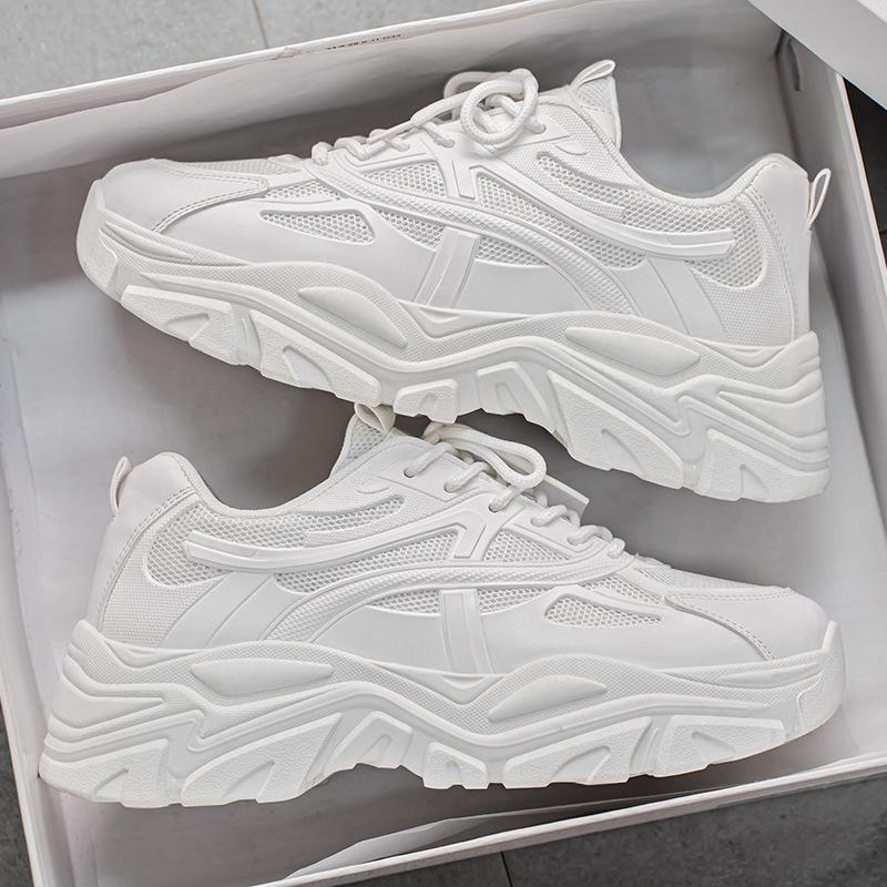 Frühlings Herren Atmungsaktive Weiße Mesh-Sneaker - Trendige Lässige Dad-Schuhe mit Dicker Sohle