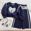 Dieses stilvolle zweiteilige Set für Mädchen besteht aus einem gemütlichen Rundhals-Sweatshirt und einer schicken Hose mit weitem Bein, perfekt für die Herbstsaison.. Das Set ist aus hochwertiger Baumwolle gefertigt, was Komfort und Langlebigkeit gewährleistet, während die langen Ärmel an kühleren Tagen für zusätzliche Wärme sorgen.. Dieses Ensemble, das sowohl auf Mode als auch auf Funktion ausgelegt ist, ist ideal für jeden lässigen Ausflug oder entspannten Tag zu Hause und bietet eine Mischung aus Komfort und zeitgemäßem Stil.