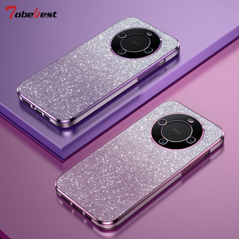 Glänzende Glitzerbeschichtung Silikonhülle für Huawei Mate 60 50 40 30 Pro Kameraobjektiv Weiche Rückabdeckung