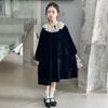 2025 Samt Prinzessinnenkleid für Mädchen: Frühlings- & Herbststil mit Spitzenbesatzkragen