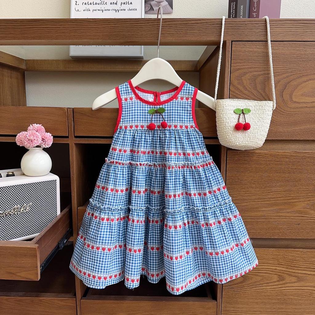 Dieses entzückende Sommermädchenkleid ist für ultimativen Komfort und Stil konzipiert.. Aus weicher, atmungsaktiver Baumwolle gefertigt, ziert es ein charmanter Kirschdruck, perfekt für sonnige Tage. Das ärmellose Design sorgt für Bewegungsfreiheit und macht es ideal für verspielte Ausflüge oder zwanglose Zusammenkünfte.. Begleitet von einer passenden gewebten Tasche, bietet dieses Kleid einen kompletten und entzückenden Look für jede kleine Fashionista.. Ob für ein Picknick oder einen Tag am Strand, dieses Kleid ist eine reizende Ergänzung für jede Sommergarderobe.