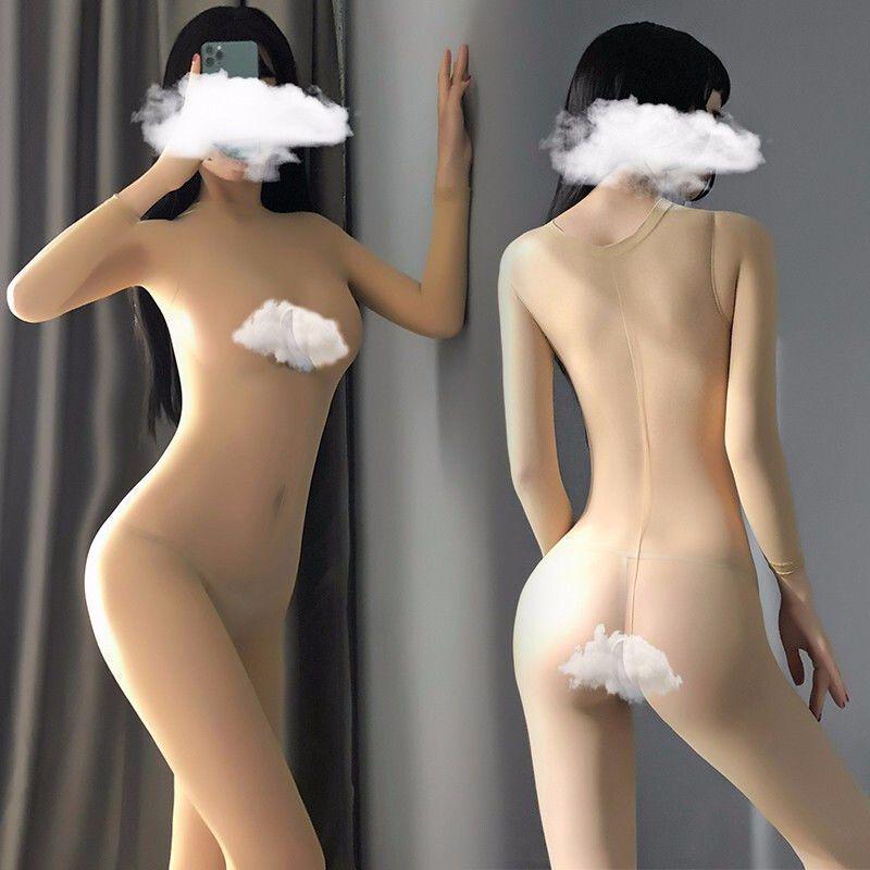 Unisex Übergröße Durchsichtiger Bodystocking mit Handschuhen und Strumpfhose für Crossdressing